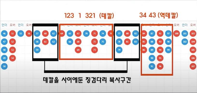 먼저 73회차부터 77회차 까지를 살펴보세요 오버가 3번 언더 가 1번 오버가 1번 출현한 것을
